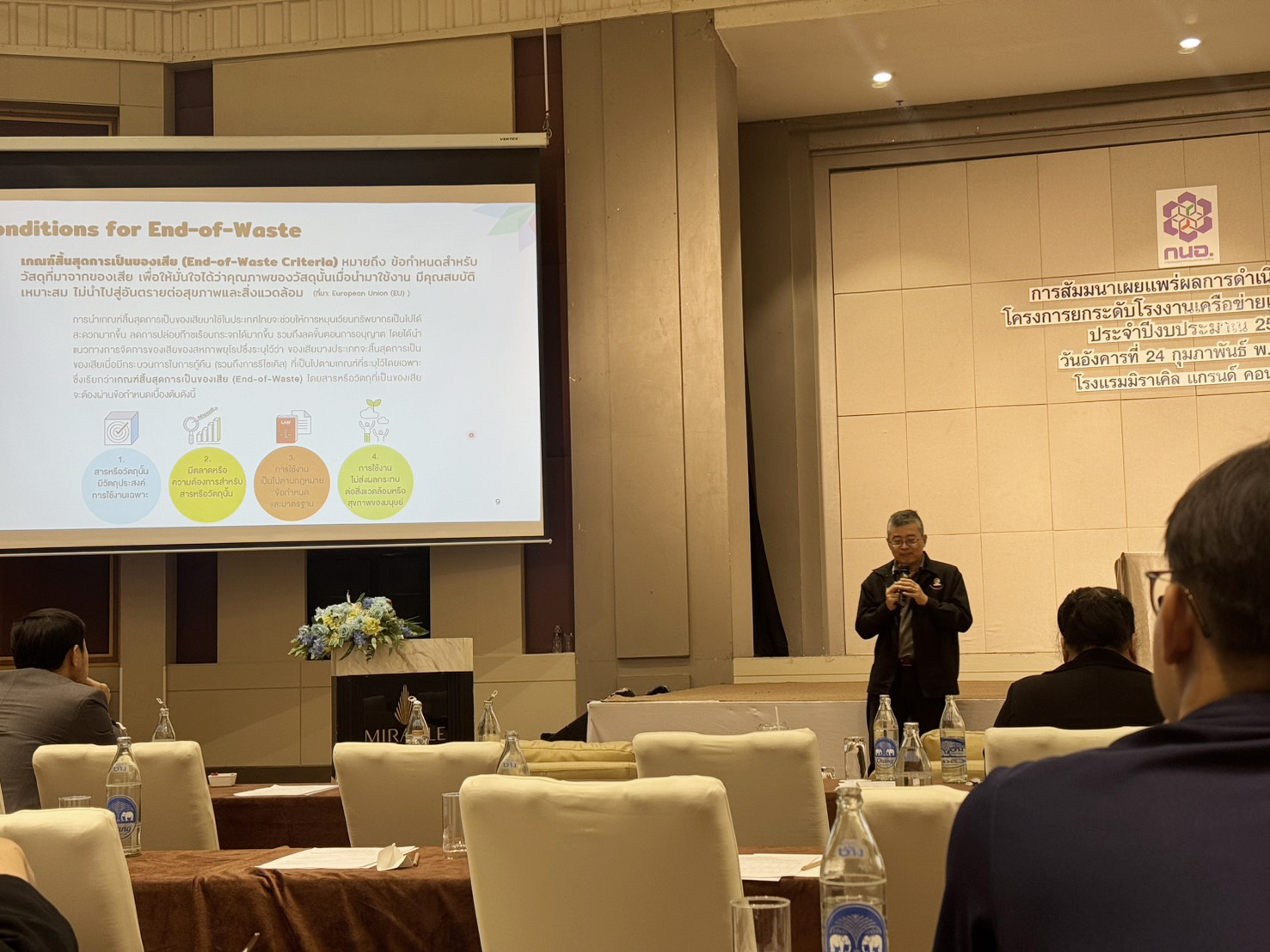 🍀การบรรยายครั้งนี้ มุ่งเน้นการถ่ายทอดองค์ความรู้และกรณีศึกษาที่สะท้อนแนวทางการลดการปล่อยก๊าซเรือนกระจก ผ่านกลไกเศรษฐกิจหมุนเวียน (Circular Economy) โดยเชื่อมโยงมิติการจัดการของเสีย การใช้ทรัพยากรอย่างมีประสิทธิภาพ และการพัฒนาระบบที่เอื้อต่อการลดผลกระทบต่อสิ่งแวดล้อมอย่างเป็นรูปธรรม โดยมีตัวอย่างการดำเนินงานของ ศสอ. ที่ผ่านมาที่ผลักดันเรื่อง circular economy ทั้งการทำเกณฑ์สิ้นสุดการเป็นของเสีย และการประเมินความเป็นเศรษฐกิจหมุนเวียนภายในองค์กร สำหรับการลดก๊าซเรือนกระจก ในการดำเนินการจัดการของเสียสามารถประเมินการลดก๊าซเรือนกระจกได้